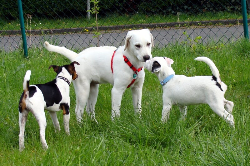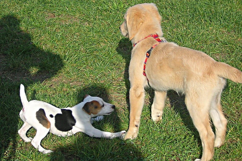 In jeder Gruppenstunde findet außerdem ein freies Spiel statt, bei dem die Welpen den richtigen Umgang mit anderen Artgenossen lernen. Bei Bedarf greife ich in das Spiel ein und leite die Welpen entsprechend an.