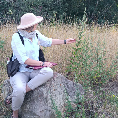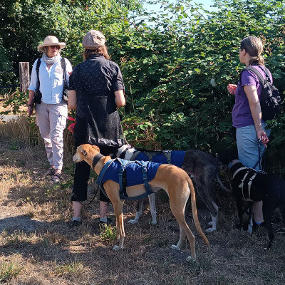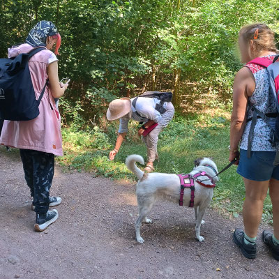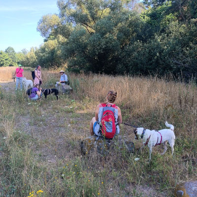 Speziell mit Blick auf unsere Hunde stellte sie uns die verschiedensten Kräuter vor, die uns bei unserer Wanderung vor die Füße kamen (und das waren eine ganze Menge, Natascha hatte für uns eine tolle Route ausgesucht!). Deren Eigenarten, ihre Erkennungsmerkmale und inwiefern wir sie bei unseren Hunden anwenden können. Es wurden fleißg Fotos und Notizen gemacht.