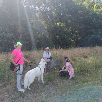 Einen wunderbar informativen Morgen erlebten die Teilnehmer der Kräuterwanderung. Die Kräuterfee Natascha fesselte in ihrer kurzweiligen Art ihr Publikum. Wo wir gingen und standen gab es Wichtiges zu entdecken, das für unsere Hunde sehr hilfreich sein kann. Sie verwies auf feine Unterschiede bei Wildkräutern, ganz besonders, wenn deren Inhaltsstoffe und ihre Wirkung sich deutlich unterscheiden! Und so wurde fleißig fotografiert, analysiert und auch verkostet.